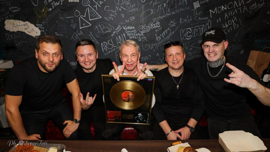 После концерта 8.11.2025 в СПБ музыкантам группы «Ва-БанкЪ» вручили памятный подарок — золотой диск.